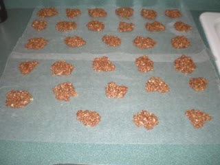 I was however successful on my first try at Chocolate No-bake Cookies!!! These are one of my all-time faves and I've always depended on my mom and the wonderful women at church for these, but now I'm so far away, my mom can't even mail them to me anymore - so I gave it a go.