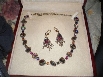 Close-up of the jewels: M bought me this set for Christmas - I've been saving it for wedding festivities since it's Pink and Purple - Our wedding colors!!! But also because we haven't been anywhere since that's nice enough to warrant fancies like these! Pretty!!!